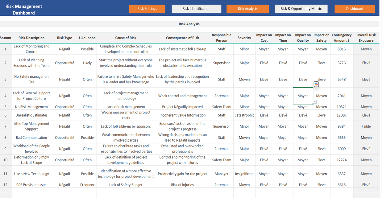 ✔️ Centralise les risques, les opportunités et les coûts associés