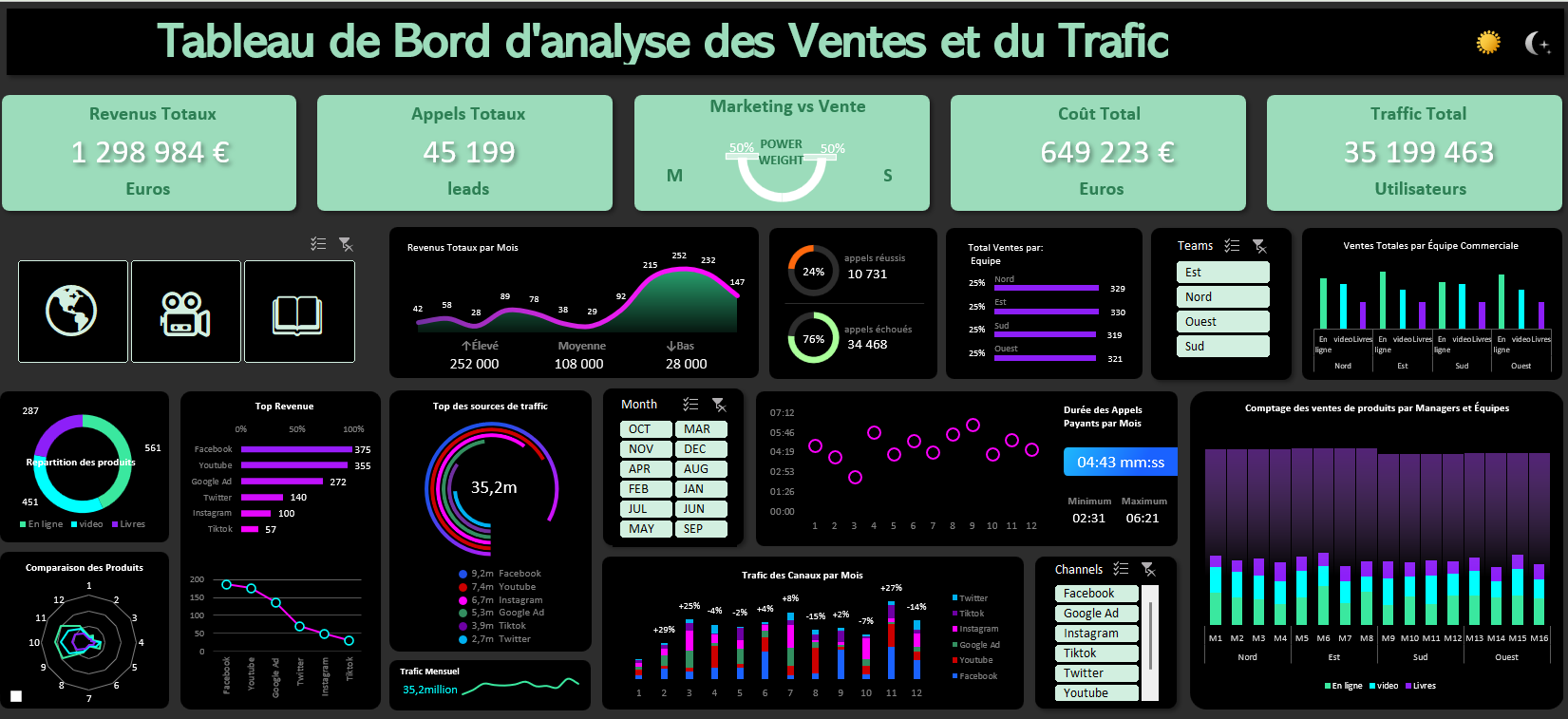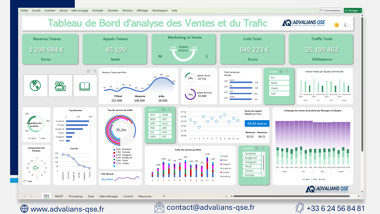 Je l’ai utilisé pour suivre nos ventes mensuelles et analyser le trafic de nos campagnes Facebook & Google Ads. Les graphiques sont dynamiques, l’interface est fluide et les résultats sont faciles à interpréter. Un vrai gain de temps dans notre reporting commercial !